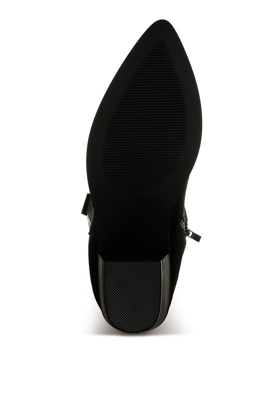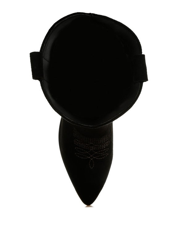 These embroidered cowboy boots with pull tabs are your new style rebels-sleek metallic accent detail with 2-inch stacked block heels. Perfect for pairing with a maxi skirt or throwing under bootcut jeans, the microfiber calf boots bring a modern twist to anything you pair them with!